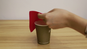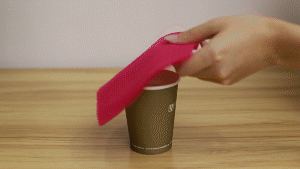 我们在杯中倒入热水,将小扬书包面料覆盖 10 秒,可以看到杯中水蒸汽汇聚成小水珠,说明透气性很好。