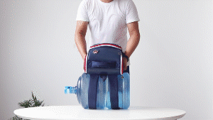 我们用标准的桶装水来测试一下小扬书包肩带缝合处是否结实,将 19L 容量的桶装水放在书包背部拎起 30S ,发现书包缝合处依旧紧实且没有一丝变形,这意味着小扬书包的承重能达到 19kg 。对于日常书包重量 7-8kg 的小朋友来说,绝对的经久耐用。