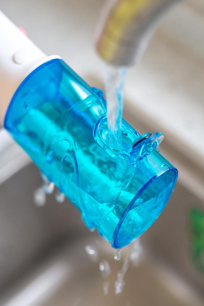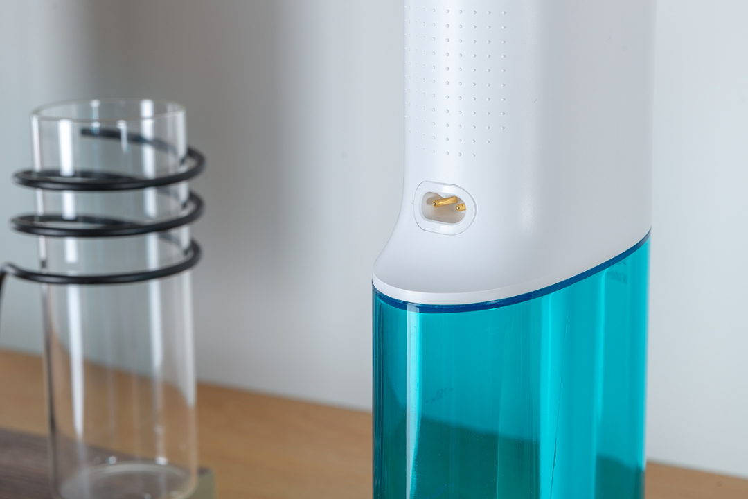 主机上自带 230ml 的大容量水箱,这样冲起来就不用反复加水了,特别方便,而且由于采用 IPX7 级防水设计,可以安心的将整台机放到水龙头底下冲冲冲,清洁得更彻底。