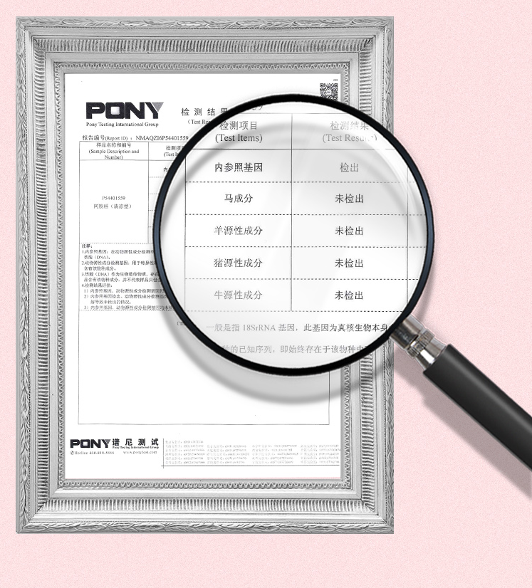古胶自建驴厂,选壮年乌头驴,熬胶时用整张驴皮。张太和阿胶糕已通过谱尼 DNA 分子技术检测,确保只有真驴皮参与熬制。
