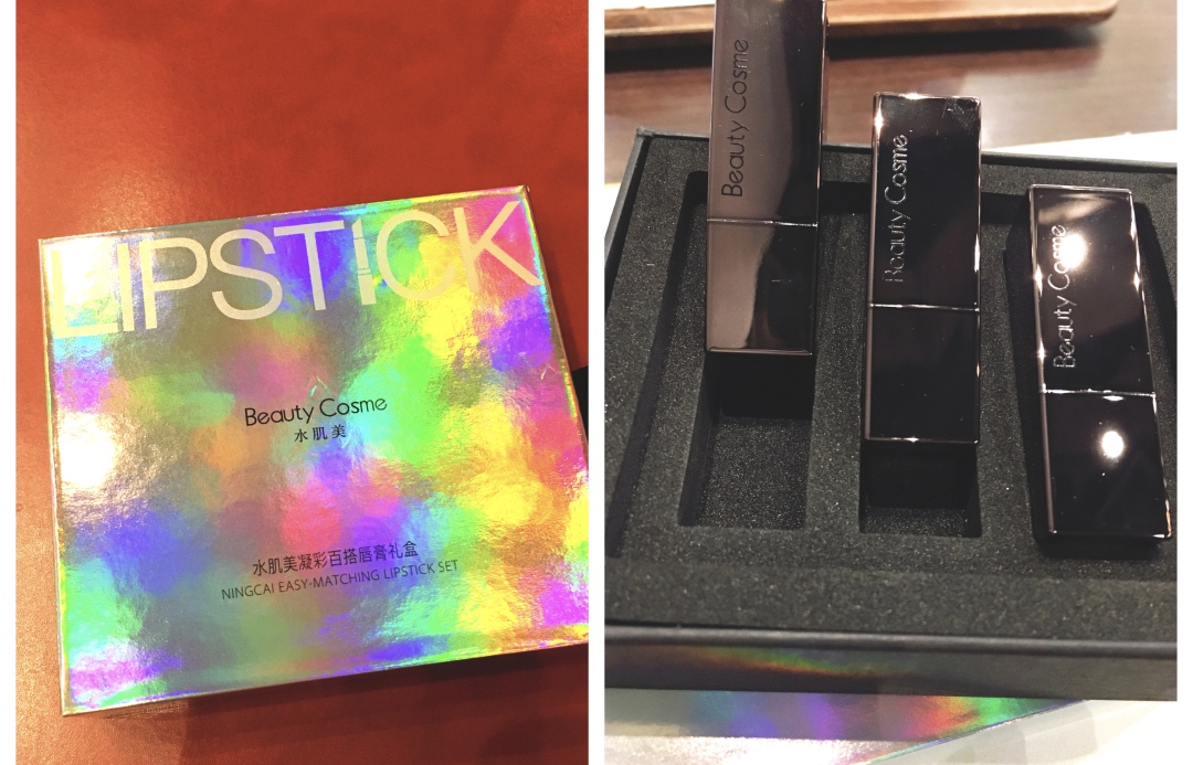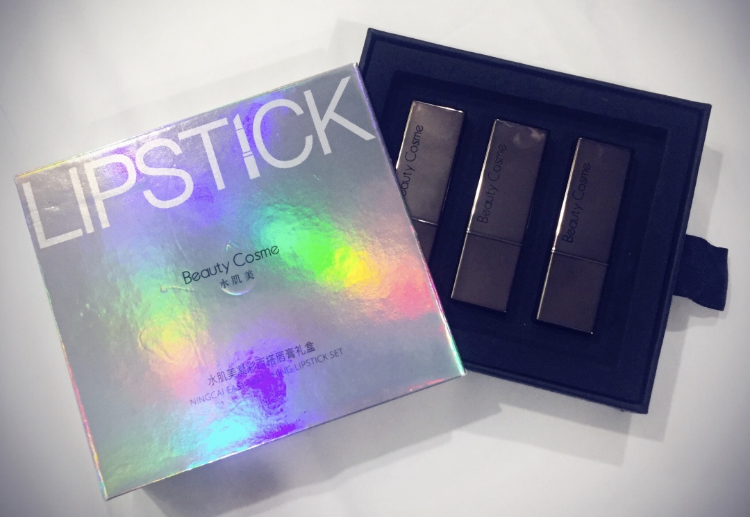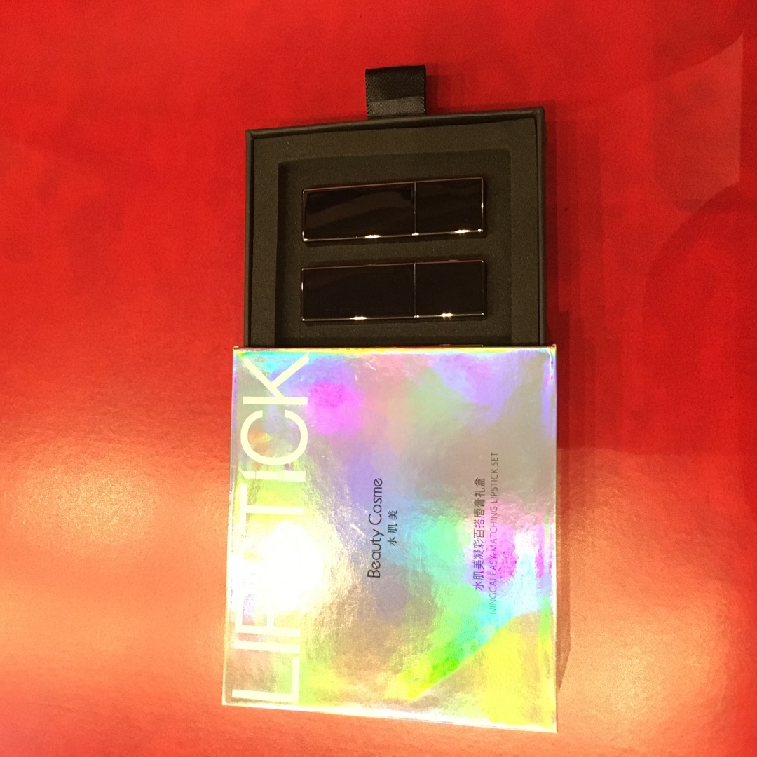 这套口红的盒子真是闪瞎眼,我在酒店的灯光下试了好多次才拍得不那么反光。