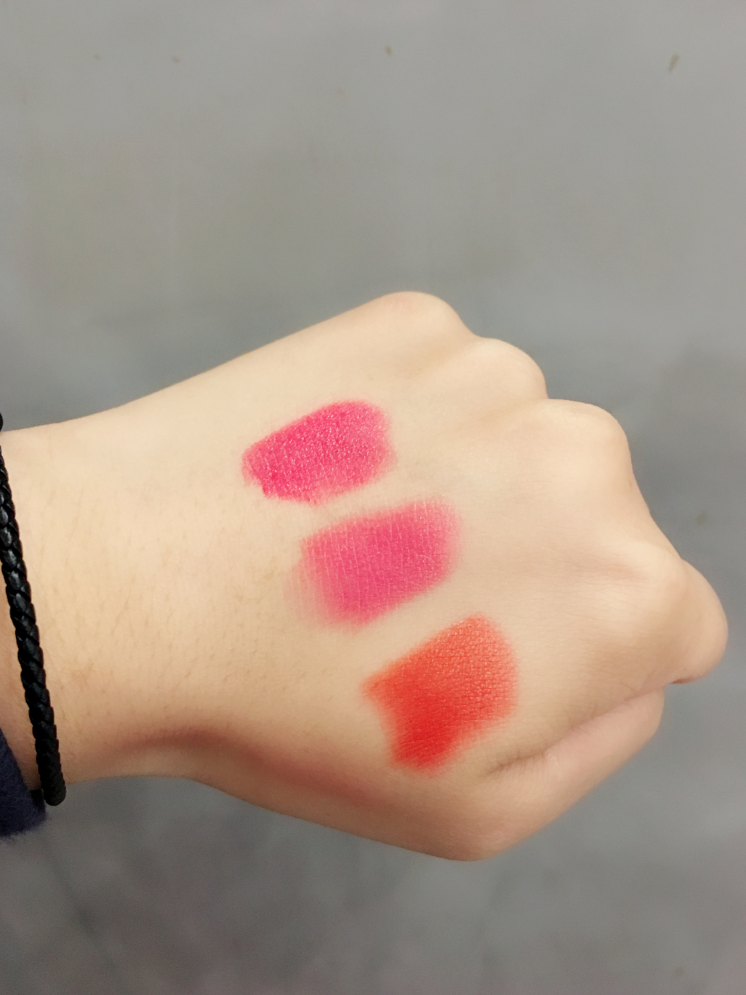 里面的口红有三个颜色,豆沙粉、玫瑰红和现在火爆流行的南瓜橘,搭配衣服都超美。
