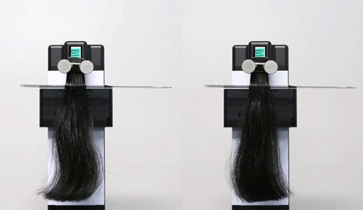 对发量少的人来说,梳子卡在干涩的头发上,很可能会揪掉更多的头发,想想自己本来头发就不多,还要被揪下来这么多,心疼!下面的实验是关于梳头发时的摩擦力的:取两缕头发,分别用龙血树洗头水和市面上的防脱洗头水清洗,然后分别测量湿发和干发的头发摩擦力,以此判断头发的顺滑感。