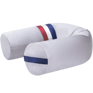 坐着睡时,将柱枕略微弯折,垫在腰间,缓冲腰背压力。