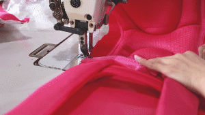 平铺的 71 块面料切片是二维的图画,又如何成为一个立体的三维书包呢?缝纫工,是这里的点睛之手。