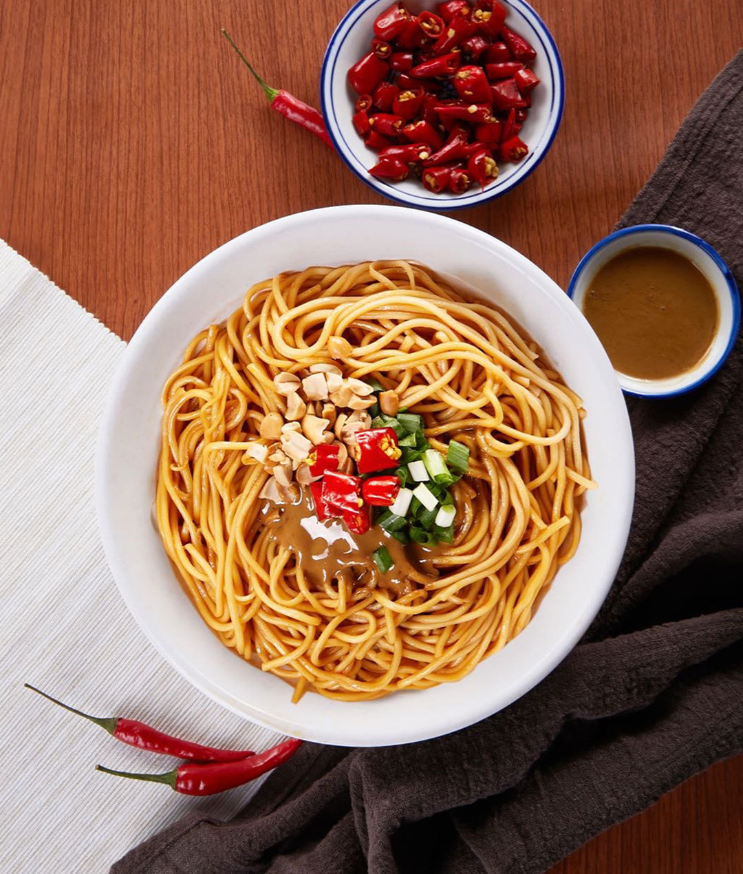最美味的担担面必须达到“酸、甜、麻、香、辣”五味的平衡,老妈独门酱料中通过辣椒、花椒、芝麻、芥花籽油、麻油进行特制搭配。味美而酱浓,香麻而带劲,地道四川招牌口味。