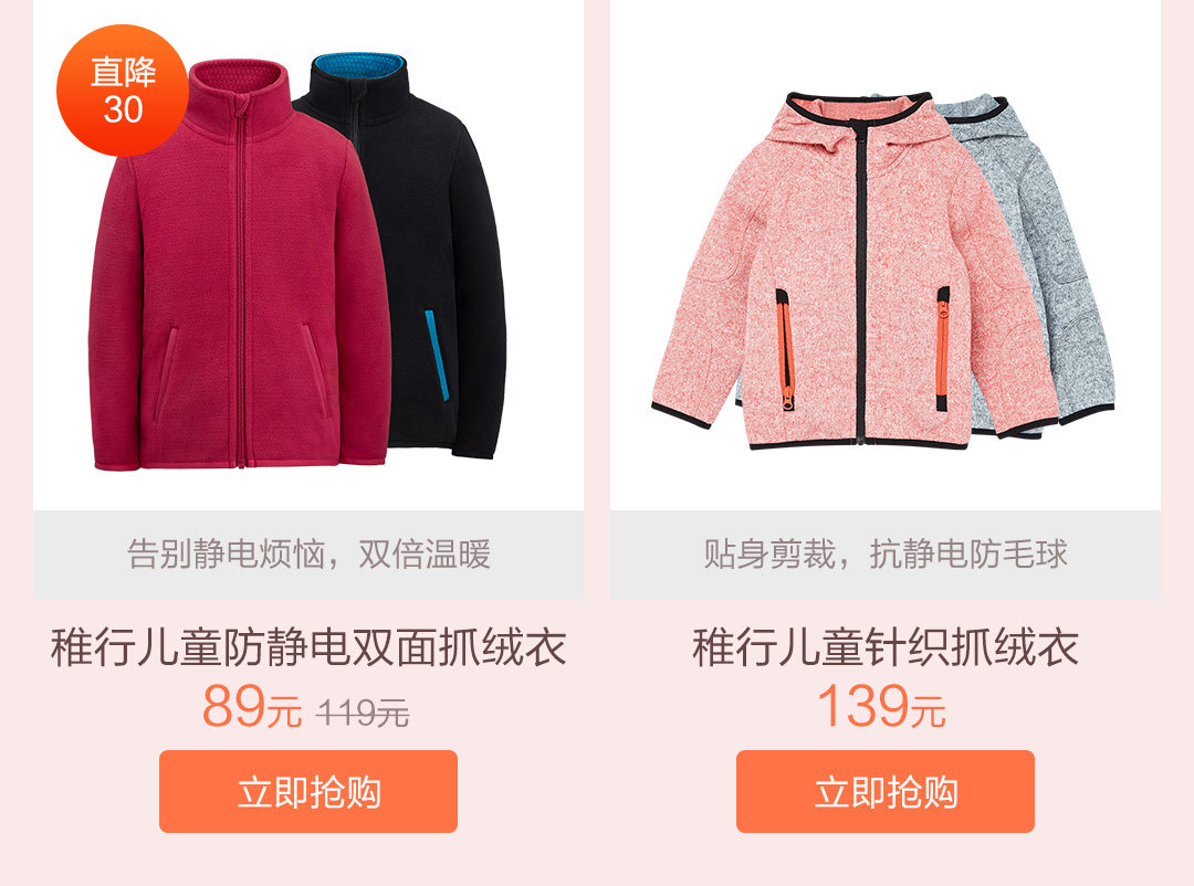 儿童防静电双面抓绒衣